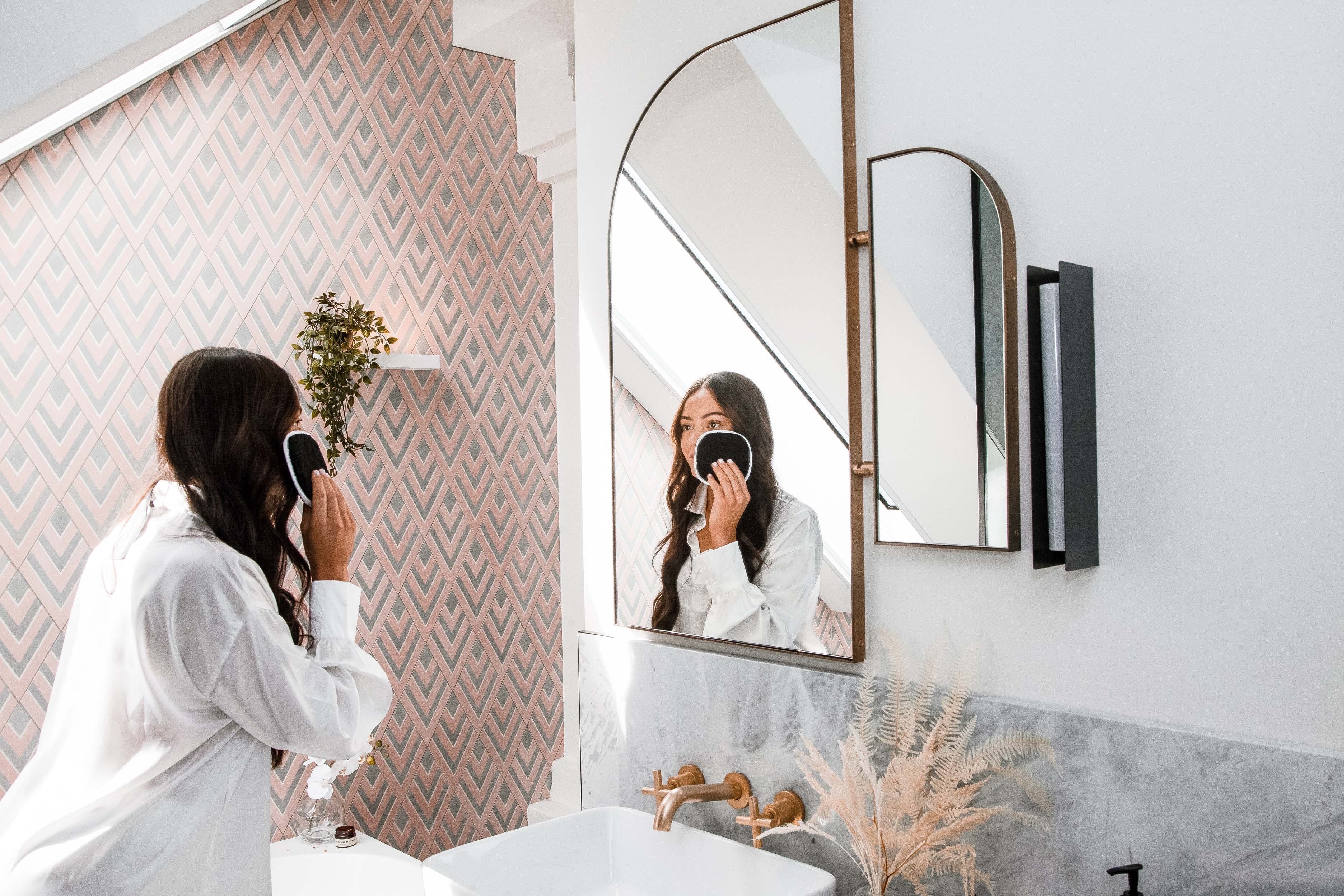 This stylish square shaped wash cloth is made up of microfibres that will get deep into your pores to lift and remove any makeup, sunscreen and impurities from your day.