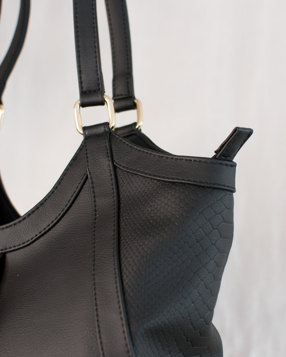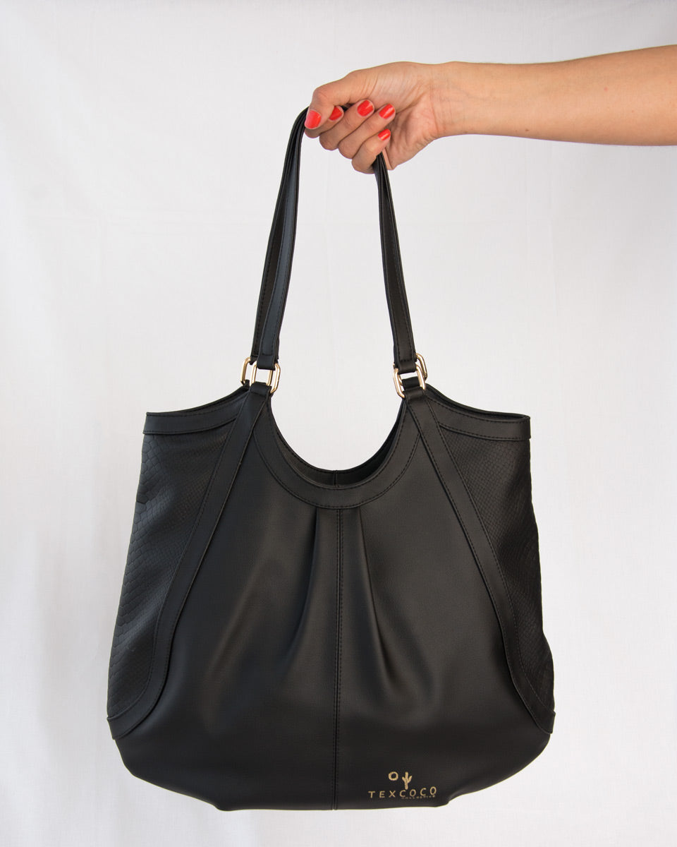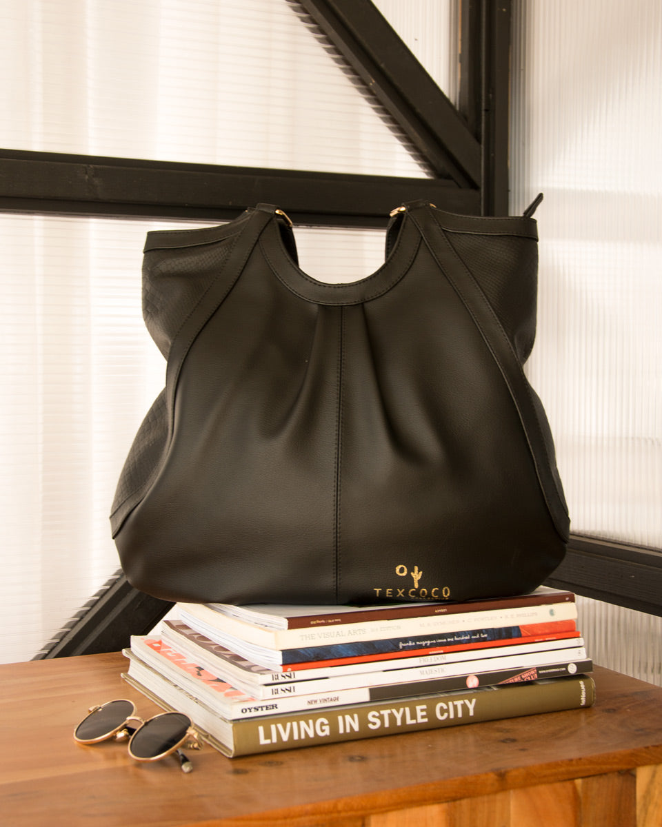 'Merida' Women's Cactus Vegan Leather Large Shoulder Bag - Black | Texcoco Collective
